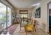The villa extends over three levels, with the main living spaces located upstairs. Access to the entrance is via an exterior staircase, leading to a large rotunda living room bathed in light and facing south, a dining room, a separate kitchen recently renovated with quality materials, an office and a toilet. .