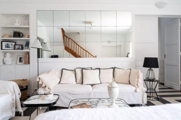 The main house, a beautiful example of 1930s seaside architecture, has retained all its charm while benefiting from modern comforts. Its ideal orientation and wide windows flood the interiors with natural light, enhancing the volumes and the spectacular views of the ocean horizon.